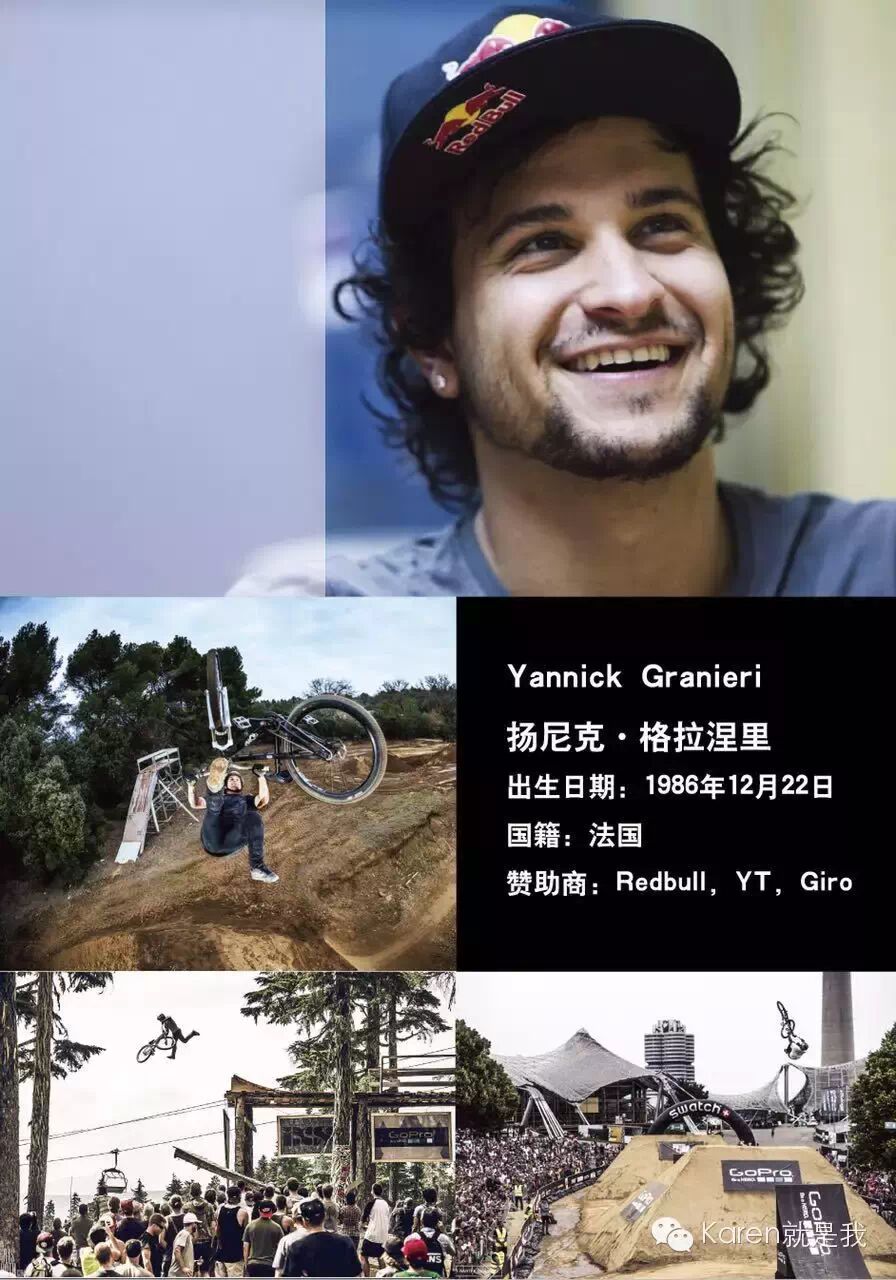 redbull, YT赞助选手,Yannick从小生长在自行车世家,祖父是Joseph Follis,自行车钢管Foliis制造商,但这并没有让Yannick从小就热爱上自行车,反而跑去练习体操,但也许是家族血液中都有着的自行车基因吧,最终他还是回到了自行车领域,而体操功底让他的自行车空中技巧动作看起来更加顺畅细腻,灵活自如。