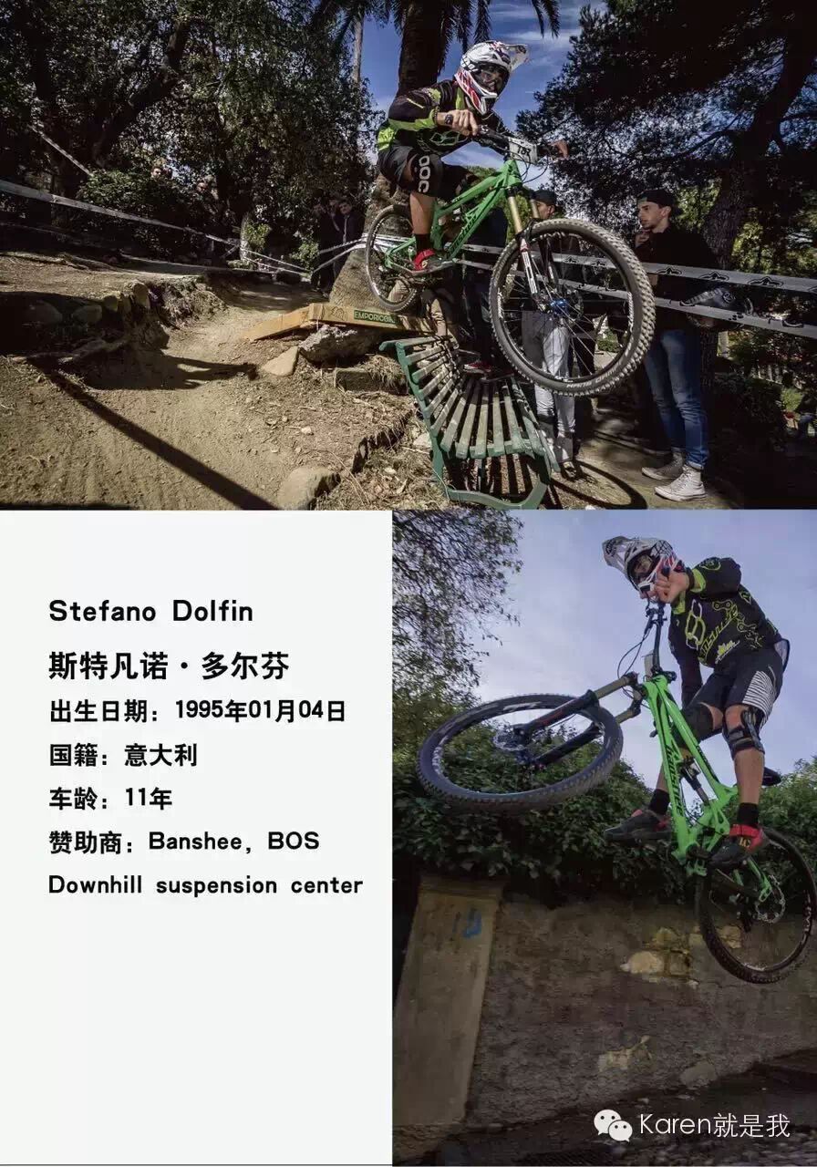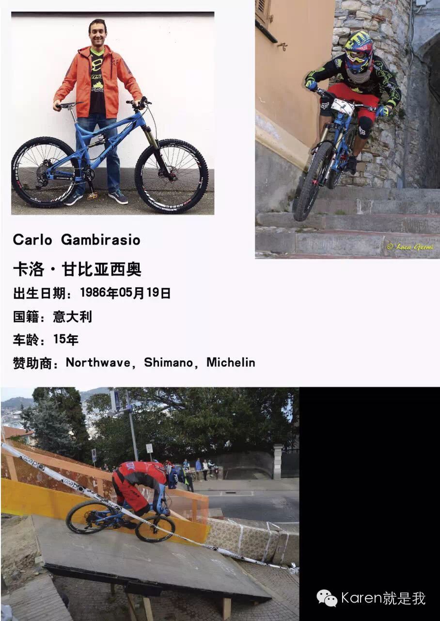 效力于意大利山地车速降国家队12年,Northwave,Shimano赞助车手,2015赛季刚开始就在罗马获得了城市速降冠军,有着丰富的Urban DH经验,在意大利山地车速降锦标赛共获得过6块奖牌。对了,他还曾经在上海生活学习过8个月,来现场观赛的朋友们还可以考考他的中文。