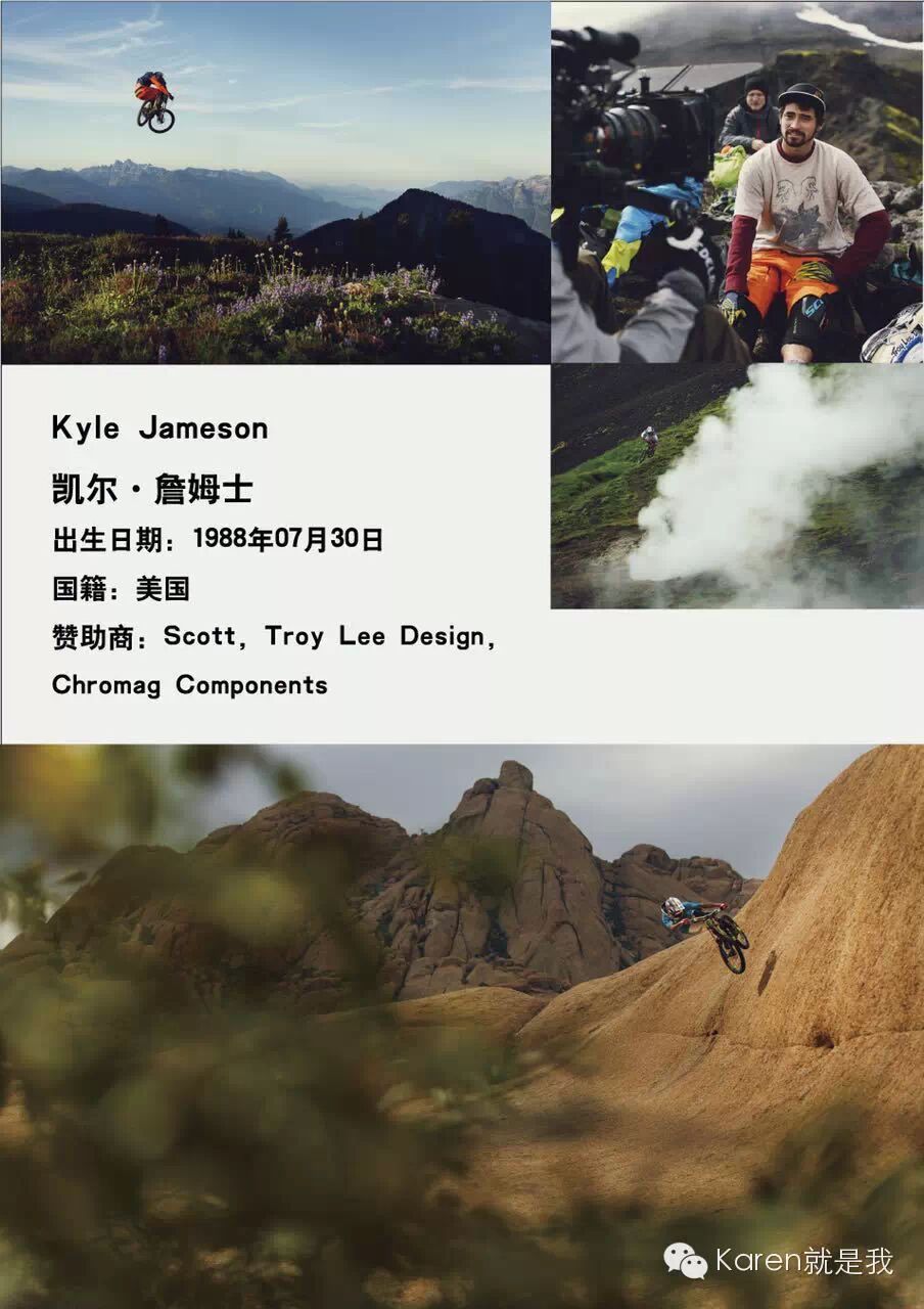 世界顶级品牌Scott和Troy Lee Design赞助选手,2014年Kyle参加了FEST全部比赛还有红牛坠山赛,偏爱传统型速降赛道,这次他将挑战自己极限,骑行999级天梯,挑战不一样的自己。2009年Kyle还出演著名山地车影片《Kranked8》,你看过了吗?