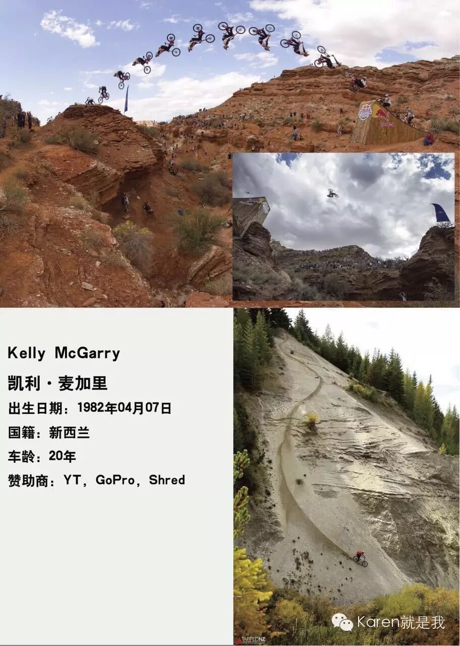 新西兰老牌车手,YT,Gopro,Shred赞助选手,山地车传奇式任务,X Game和Crankworx已经满足不了野心勃勃的Kelly,超过5次挑战美国犹他州红牛坠山赛,并在2013年获得第二名的好成绩,同一年他还在坠山赛的Canyon跳台(超过22米跨度)上做出了第一个山地车后空翻,改写红牛坠山赛历史!