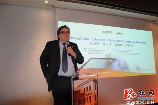 意大利威尼托旅游协会联盟主席安东尼在张家界旅游推广交流会上致辞